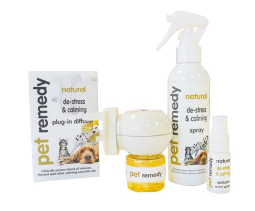 Many people have reported good effects from homeopathic remedies, such as Pet Remedy. Which comes in the form of a plug in or a spray. For best effect start using the remedy when your dog is relaxed, preferably several weeks before the fearful event so that the smell of the remedy also reminds them to feel relaxed. It works without the side effects of sedatives and can be used in combination with the other treatments mentioned below.