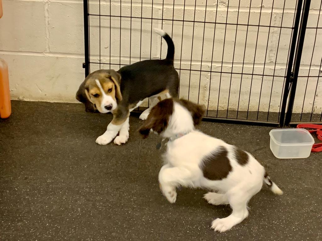 Part of understanding another’s language is learning how to speak it yourself, how to position your body, when to pull a certain face, recognising the responses and responding appropriately. This cannot be practiced without exposure, and will not be practiced well with restriction, such as when on a lead. This is achieved by role playing, taking it in turns to be the aggressor or the subject of the aggression. Pretending to be aggressive might prevent injury in the future. Communication skills help to build social cohesion which is especially important when regularly being exposed to multiple dog environments.